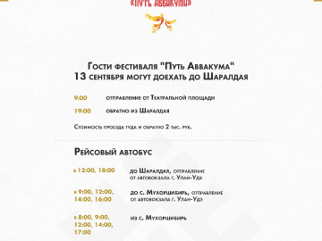 Гости фестиваля "Путь Аввакума" 13 сентября могут доехать до Шаралдая