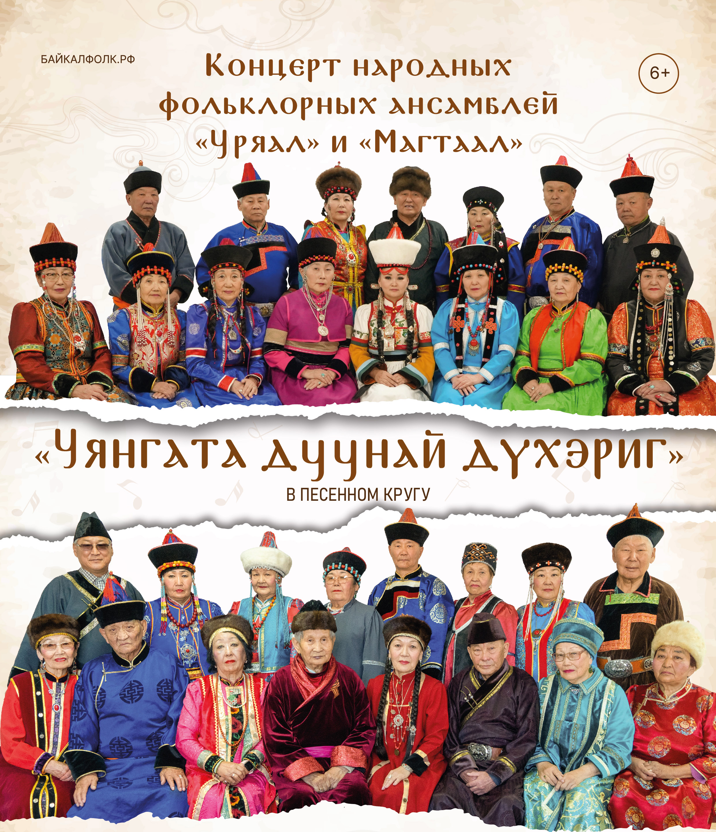 Народные фольклорные ансамбли «Уряал» и «Магтаал» приглашают жителей и гостей Улан-Удэ на концерт «Уянгата дуунай дɣхэриг» («В песенном кругу»).