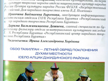 Кроме того, в издании представлены сведения обо всех экспедиционных выездах, которые были проведены в течение первых трех лет (2022–2024 гг.) проекта «Цикл фольклорных экспедиций по выявлению объектов нематериального этнокультурного достояния народов России». Так в Бурятии экспедиции состоялись в июне 2022 г. и октябре 2023 г.
