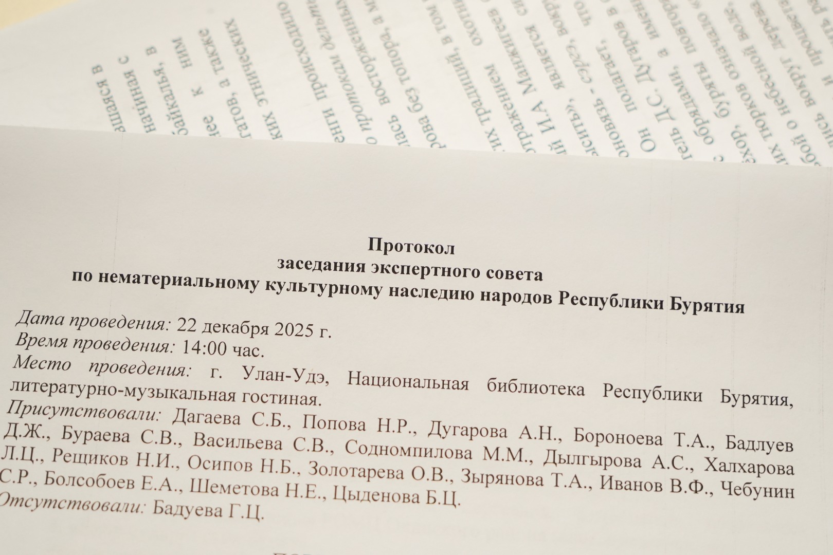 Заседание Совета, в состав которого входят ведущие ученые-этнографы, филологи, искусствоведы и практики в сфере традиционной культуры, прошло под председательством министра культуры Республики Бурятия Соёлмы Дагаевой.
