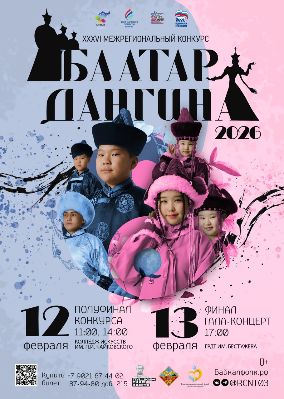 Конкурс «БААТАР. ДАНГИНА – 2026» стал доброй традицией, выявляет и поддерживает одаренных детей и молодежь, которые не только демонстрируют свои таланты, но и являются знатоками и носителями богатой национальной культуры. Участники соревнуются в шести номинациях, разделенных по возрастным категориям и направлениям: «Хүүгэн Баатар» и «Хүүгэн Дангина» (6-10 лет), «Эдир Баатар» и «Эдир Дангина» (11-15 лет), а также «Баатар» и «Дангина» (16-22/25 лет).