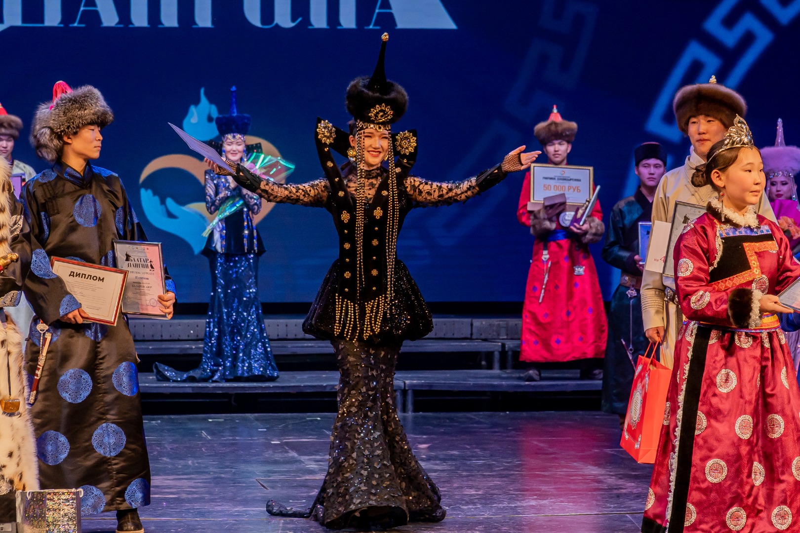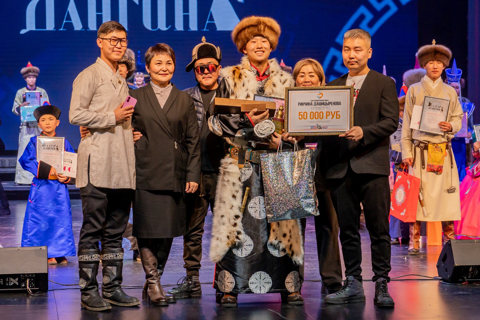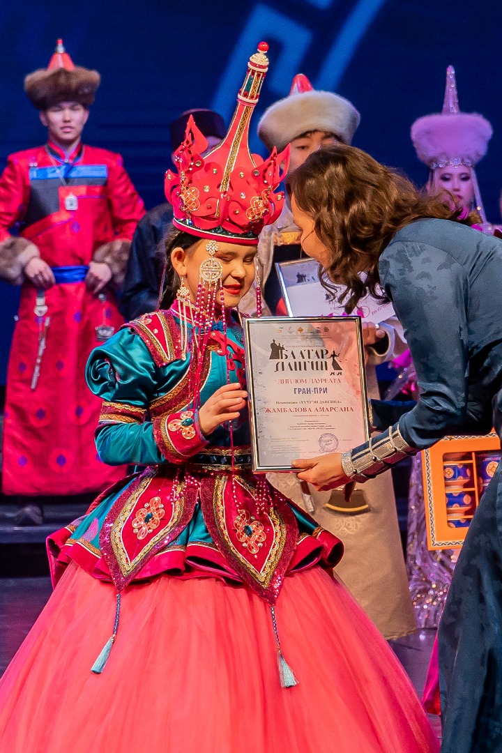 Победители Гран-при получили уникальные призы: специальные кубки от АНО «Дарханы Бурятии» (мастер Тумен Митыпов), денежные сертификаты от Министерства культуры РБ и благотворительного фонда Ринчина Дашицыренова (по 50 тысяч рублей). Юным баторам также вручили традиционные мужские поясные украшения (мастер Бато Мэрдыгеев), а дангинам – эксклюзивные комплекты женских украшений ручной работы от АО «Разрез Тугнуйский» (генеральный директор Юрий Андреев) мастера Владимира Табитуева.