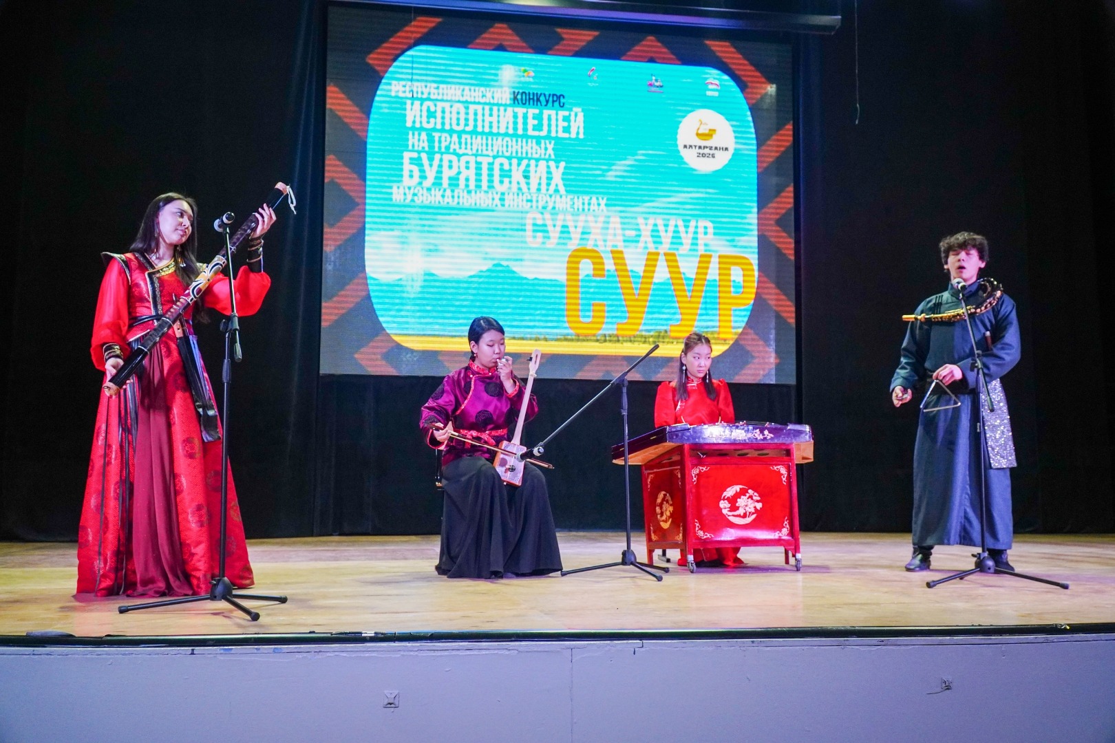 Подведены итоги республиканского конкурса исполнителей на традиционных бурятских музыкальных инструментах – сууха-хууре и сууре. В мероприятии приняли участие около 40 конкурсантов. По итогам прослушиваний и обсуждения конкурсных программ жюри определило победителей и сформировало рекомендации для включения в состав творческой делегации Республики Бурятия на XVI Международный бурятский фестиваль «Алтаргана–2026».