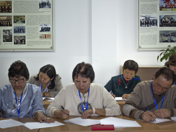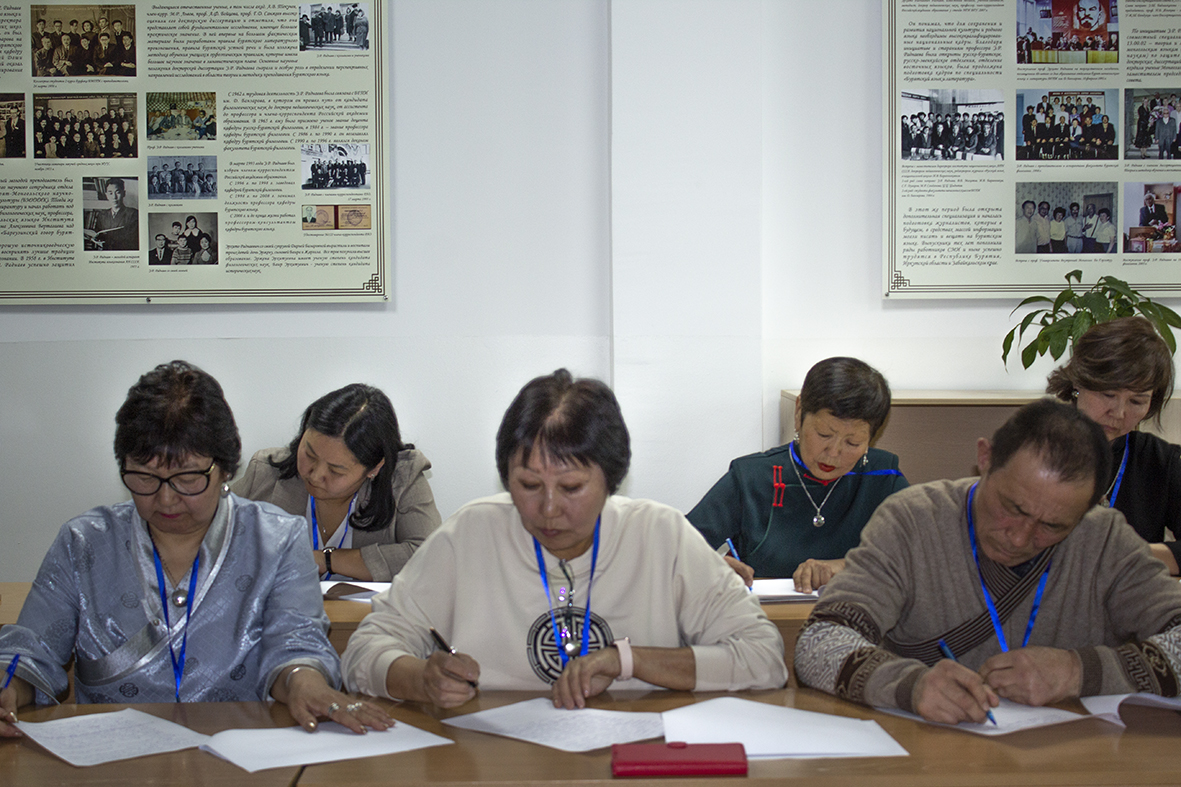 На очном этапе участникам была предложена тема для написания мини-эссе «Арад зонойм сэдьхэлые һалбаруулан хүгжѳѳхэ бодол байха…», затем прошло прослушивание эссе и устный диалог по теме эссе между участниками конкурса и членами жюри.