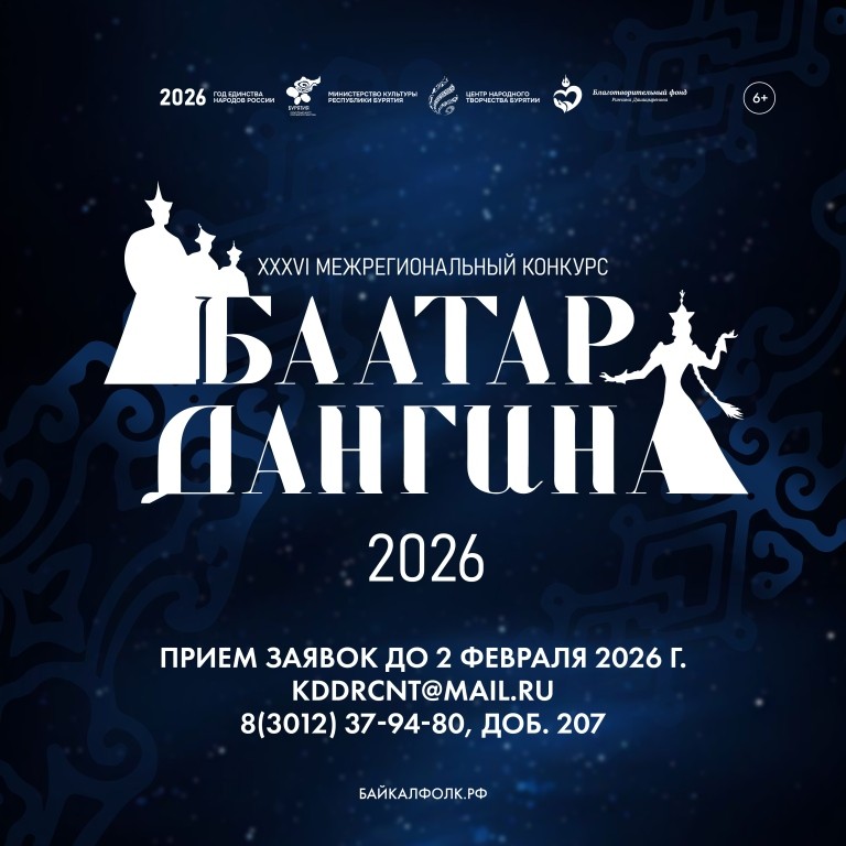 Министерство культуры Республики Бурятия, Центр народного творчества Бурятии и Благотворительный фонд Ринчина Дашицыренова объявляют о старте приема заявок на XXVII Межрегиональный конкурс «Баатар-Дангина» до 2 февраля 2026 года. Конкурс, ставший доброй традицией, в 2026 году пройдёт в рамках Года единства народов России.