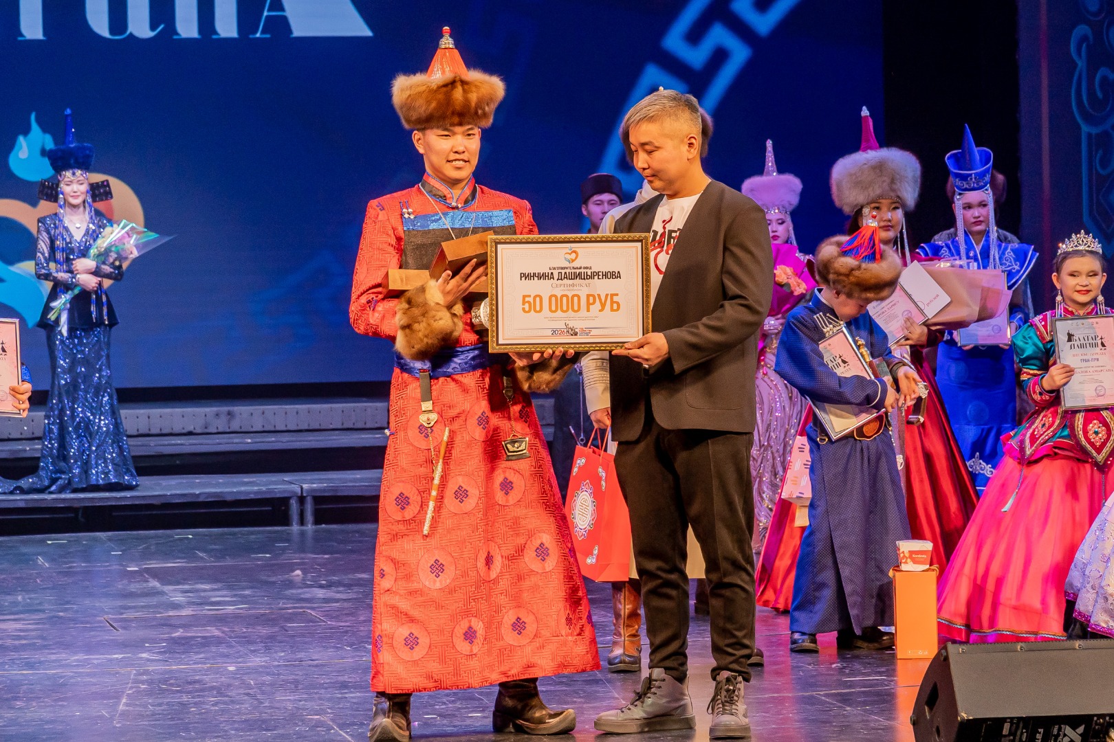 Торжественная церемония награждения завершила XXXVI Межрегиональный конкурс «Баатар. Дангина – 2026». В этом году география участников охватила Республику Бурятия, Иркутскую область и Забайкальский край. Конкурс проходил в несколько этапов: из 82 участников полуфинала жюри отобрало 26 финалистов, которые и поборолись за призовые места и Гран-при.